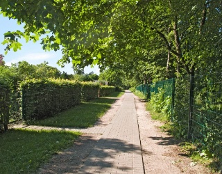 und liegt zwischen dem Försterweg und den Gleisen der Fernbahnen.